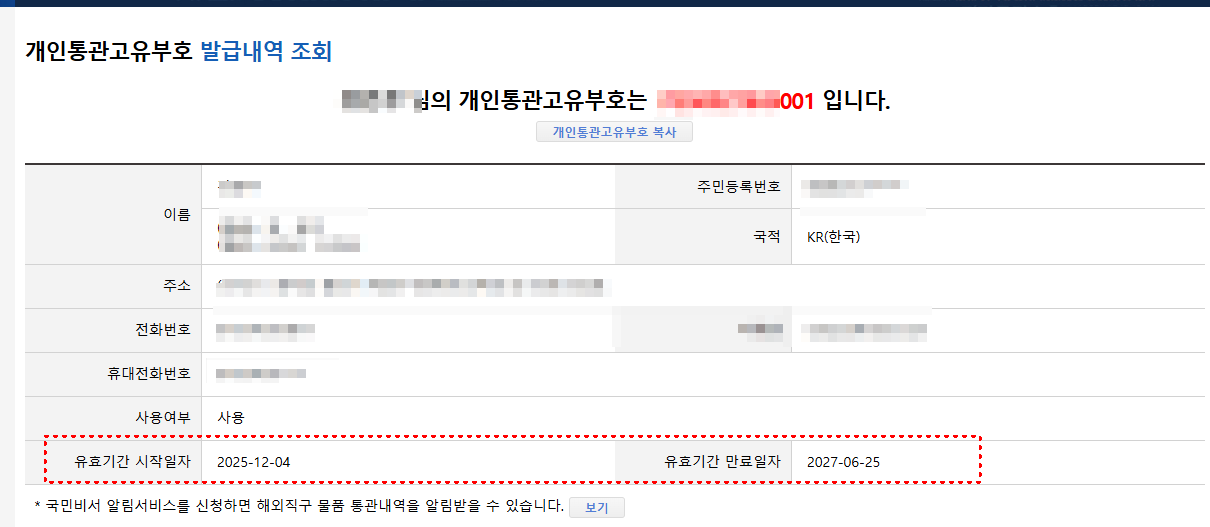 2026년부터 개인통관번호의 유효기간이 1년으로 제한되며, 매년 갱신이 의무화됩니다.