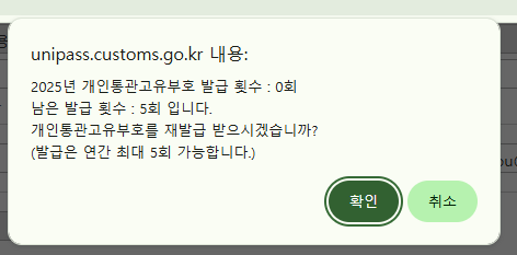 개인통관번호 재발급은 연간 5회까지 무료로 가능하니 안심하세요.
