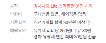 • 개인 명의 차량만 가능 (법인차량 제외)