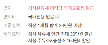 • 사용법: 전용 카드로 주유 시 자동 할인