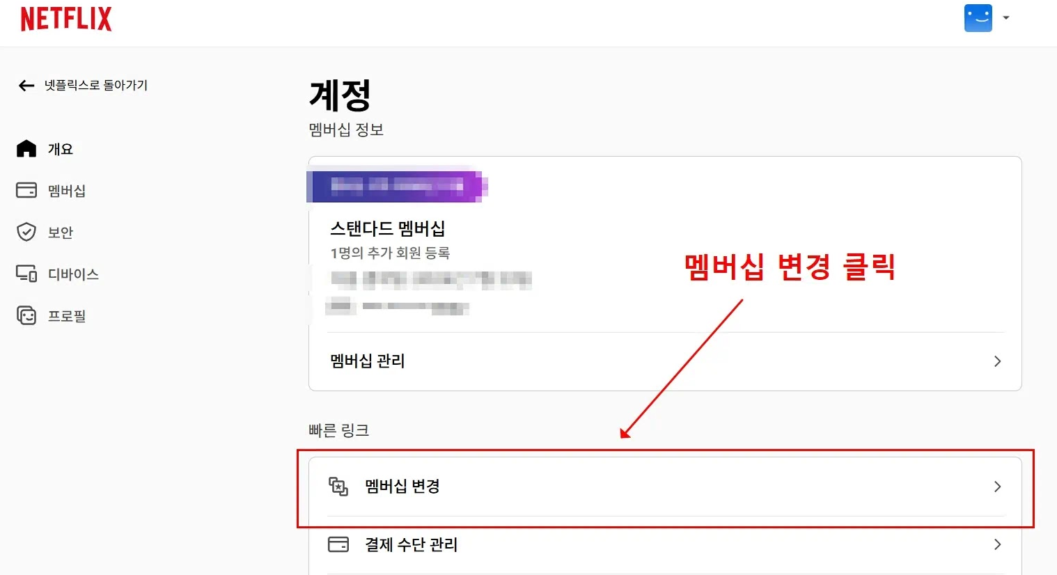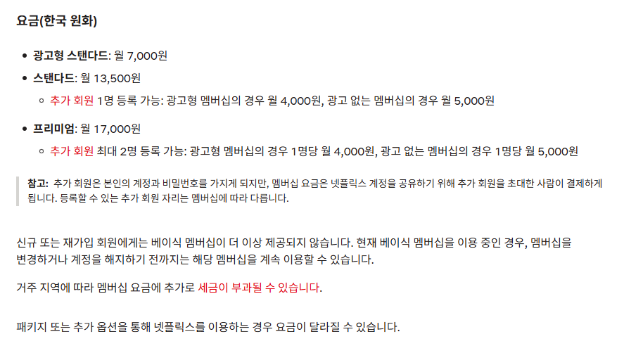 2023년 11월부터 같은 가구 외 계정 공유 시 추가 회원 등록비(월 5,000원)가 부과된다. 넷플릭스 요금제 변경방법보다 계정 분리가 더 경제적일 수 있다.