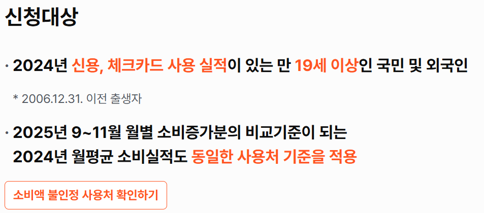 | 소비 실적 집계 | 2025년 9월 1일 ~ 11월 30일 | 신용·체크카드 사용액 자동 집계 |
