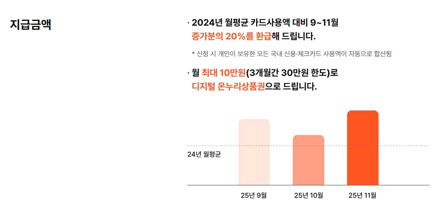 • 월 최대 20만 원 환급 – 한 달 사용 금액에 따라 최대 20만 원까지 페이백 가능