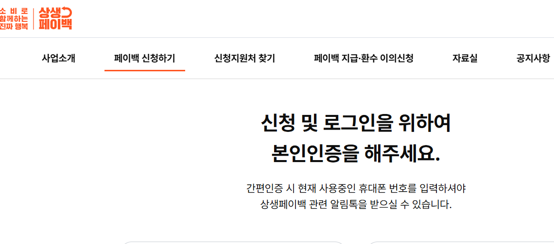 https://상생페이백.kr 또는 포털에서 '상생페이백' 검색 후 공식 사이트 접속 - 본인 인증