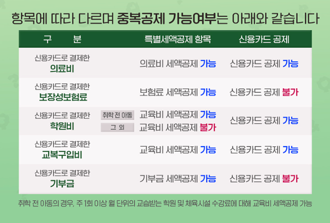 • 약국 의약품: 처방전 있는 경우 공제 가능 (처방전 없어도 OK)