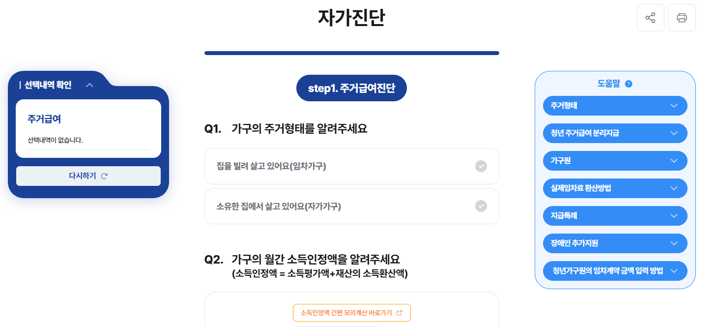 이곳에서 간단한 정보만 입력하면, 내가 실제로 주거급여 대상자인지 여부를 실시간으로 시뮬레이션해볼 수 있습니다.