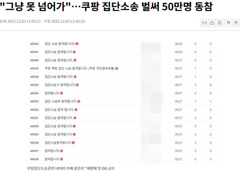 - 피해자 대응: 집단소송 카페 가입자 50만 명 돌파 (12월 초 기준)
