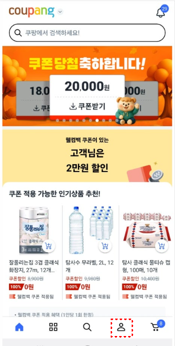 - 1단계: 웹브라우저에서 www.coupang.com 접속 후 로그인