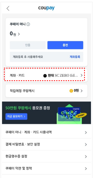 - 1단계: MY쿠팡 → 결제 수단 관리
