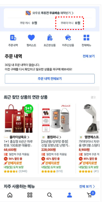 - 1단계: 쿠팡페이 앱 실행 (또는 쿠팡 앱 내 쿠팡페이 메뉴)