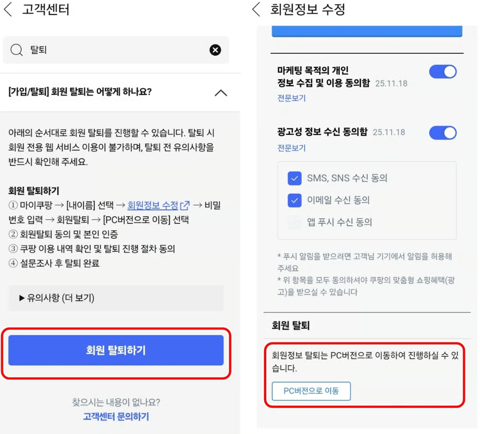 쿠팡 회원탈퇴 방법 주의! 6단계 복잡한 절차 완벽 가이드