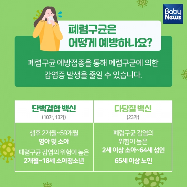 • 백신: 프리베나13, 박스뉴반스15, 프리베나20 (2025년 10월부터)