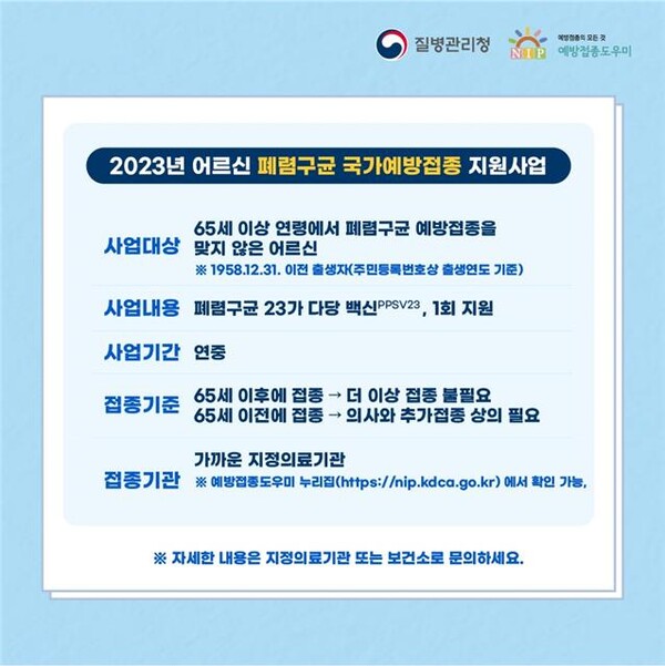 5. 23가 다당질백신(PPSV23) 무료 접종