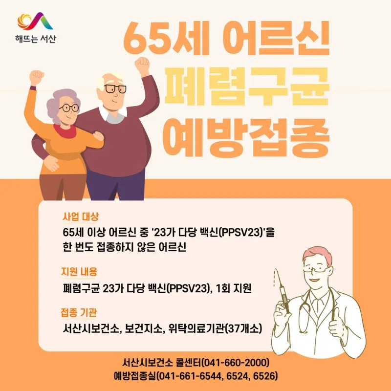 가장 중요한 것은 만 65세 이상이라면 국가지원으로 23가 백신을 무료로 접종받을 수 있다는 점입니다. 신분증만 지참하면 전국 보건소 및 지정 의료기관에서 평생 1회 무료 접종이 가능하므로, 꼭 활용하시기 바랍니다. 영유아 역시 생후 2개월부터 국가필수예방접종(NIP)으로 무료 접종을 받을 수 있습니다.