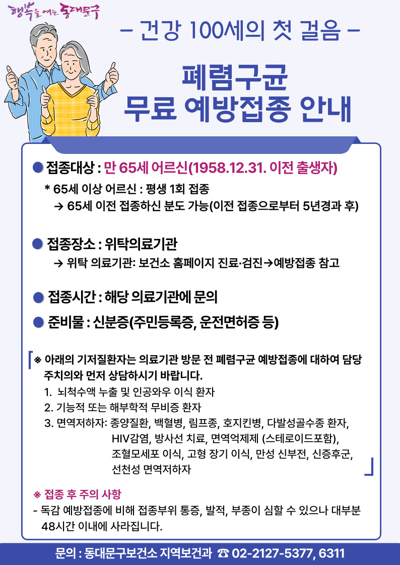 폐렴구균 예방접종 비용 총정리 가격 및 무료대상 확인