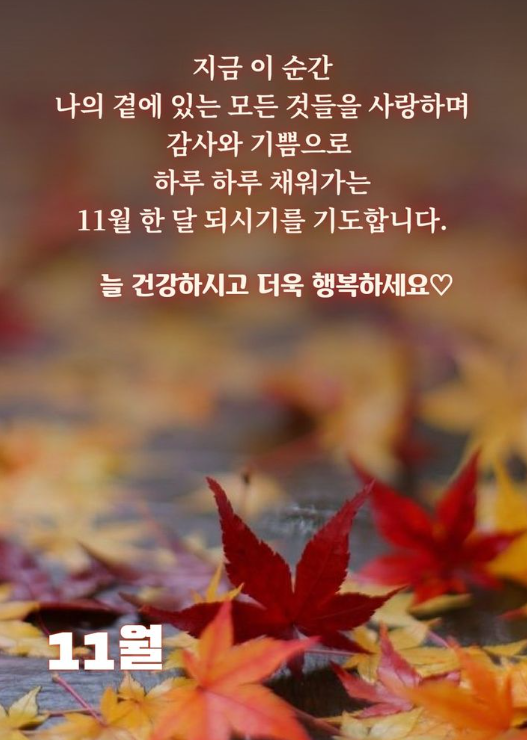 • "벌써 11월이네요. 남은 한 해도 건강하고 행복하게!"