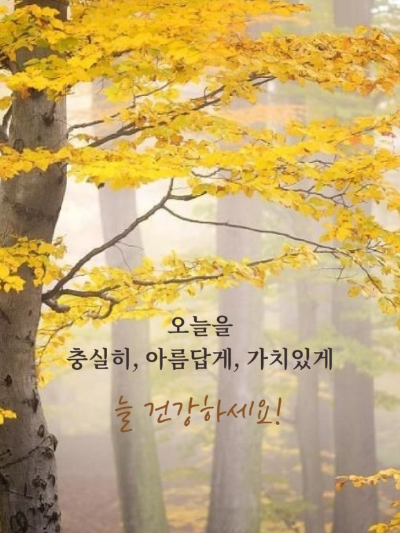 • "늦가을 아침의 맑은 공기처럼 상쾌한 하루 보내세요"