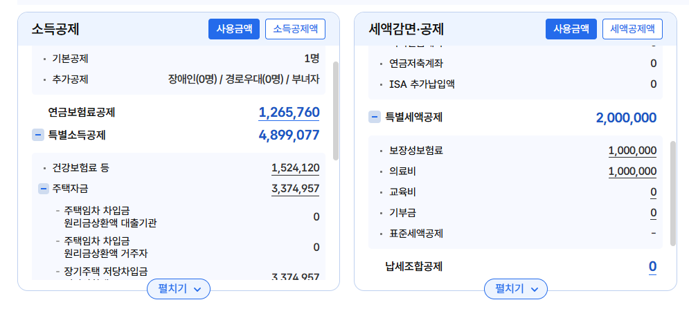 ✅ 공제 항목별 세액공제 시뮬레이션